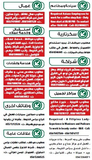 الوظائف الشاغره المنشورة فى جريدة الوسيط براس الخيمة بالامارات اليوم السبت 6 \ 5 \ 2017