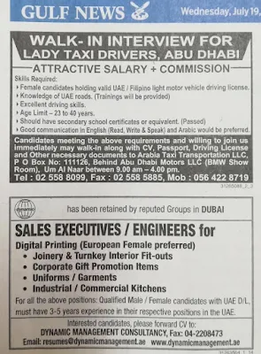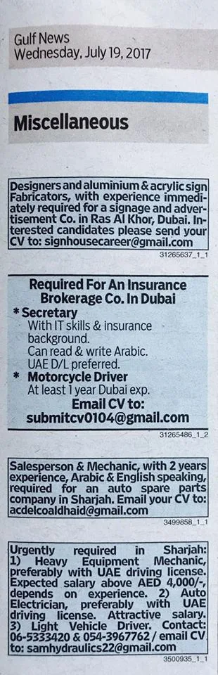 gulf news jobs today19/7/2017 وظائف شاغرة من جريدة جلف نيوز الاماراتية اليوم . الاماراتى للتوظيف الاماراتى للتوظيف