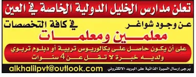 وظائف الامارات وظائف معلمين كافة التخصصات للعمل فى مدارس الخليل الخاصة فى امارة العين 2017/2018 الاماراتى للتوظيف اعلان توظيف فى مدارس الخليل الخاصة فى امارة العين 2017/2018 المصدر : جريدة الوسيط العين العدد : 26 اغسطس 2017 الوظائف المطلوبة : - مدرسين جميع التخصصات نتمنى للجميع التوفيق وظائف الامارات وظائف مدرسين الاماراتى للتوظيف مقالات قد تهمك